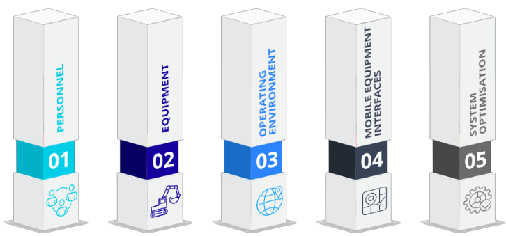 This group of business inputs ensures mobile equipment operations are safe, productive, and fully integrated into everyday business and operational processes. It focuses on having a system-wide view of activities and making adjustments when needed.